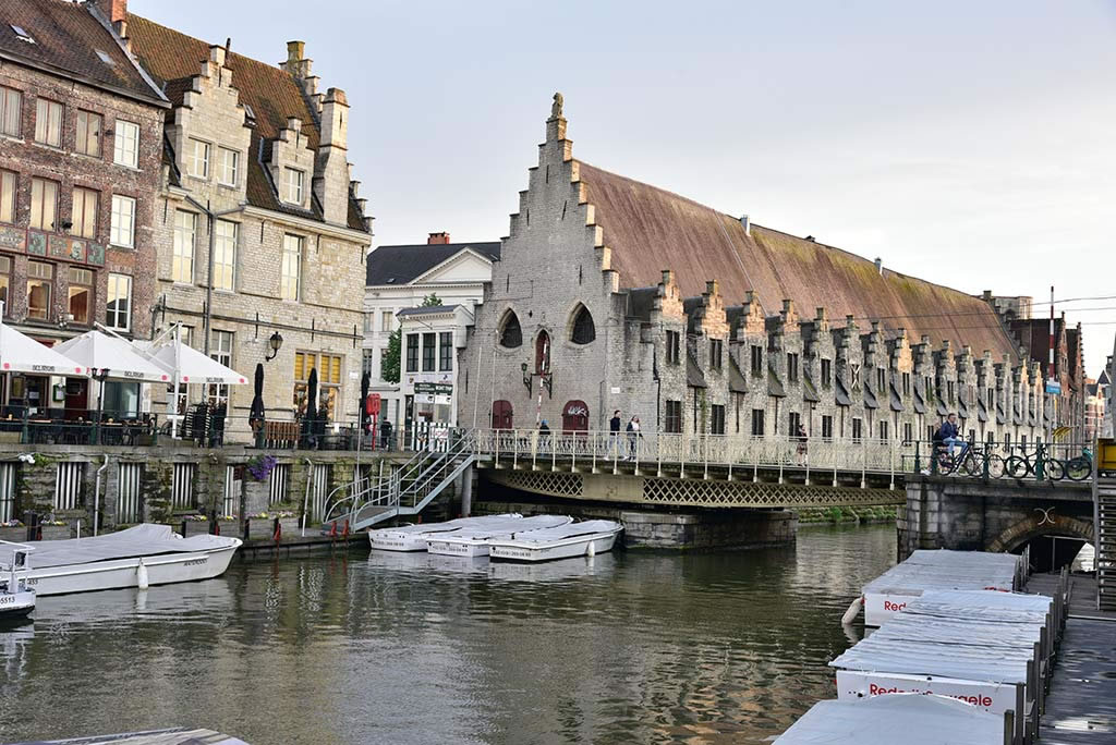 Groot Vleeshuis : Comme la vente de viande était interdite au cours du Moyen Âge, cela se faisait dans des endroits particuliers. Construit au début du quatorzième siècle, le bâtiment que l’on aperçoit servait de lieu de vente. On pourrait traduire ce mot par « Grande maison de viande ». À la fin du XIXs, sa vocation a changé. Il est devenu tour à tour marché de fruits et légumes, bureau de poste, parking et poissonnerie. Aujourd’hui, il est en transformation pour devenir un abri à vélo.Précédent | Accueil | Suivant |