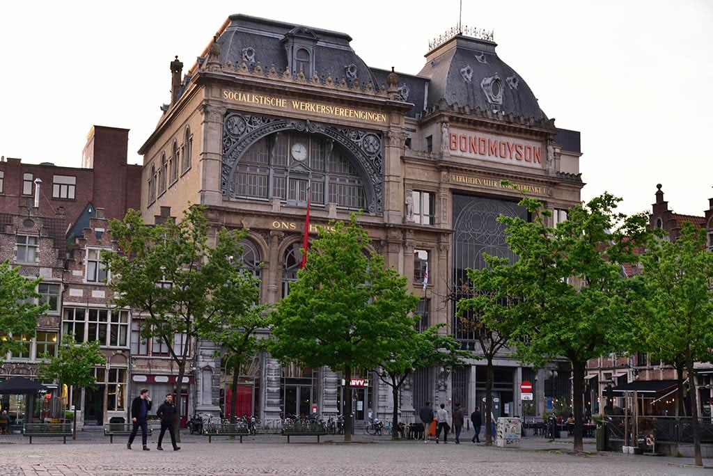 Ons Huis : Construite à la fin du dix-neuvième siècle dans le style Art Nouveau qui faisait fureur à l’époque, c’est la Maison du peuple Notre Maison. Il est situé sur la place du Marché du Vendredi. C’est un centre administratif et le cœur du mouvement socialiste à Gand.Précédent | Accueil | Suivant |