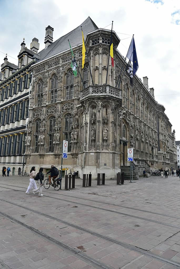 Stadhuis : C’est l’Hôtel de Ville de Gand. Construit à partir de 1482, il s’agit aujourd’hui d’un imposant ensemble de bâtiment de différentes époques avec différentes architectures. La partie que l’on voit sur la photo est située au coin de Botermarkt et de Hoogpoort.Précédent | Accueil | Suivant |
